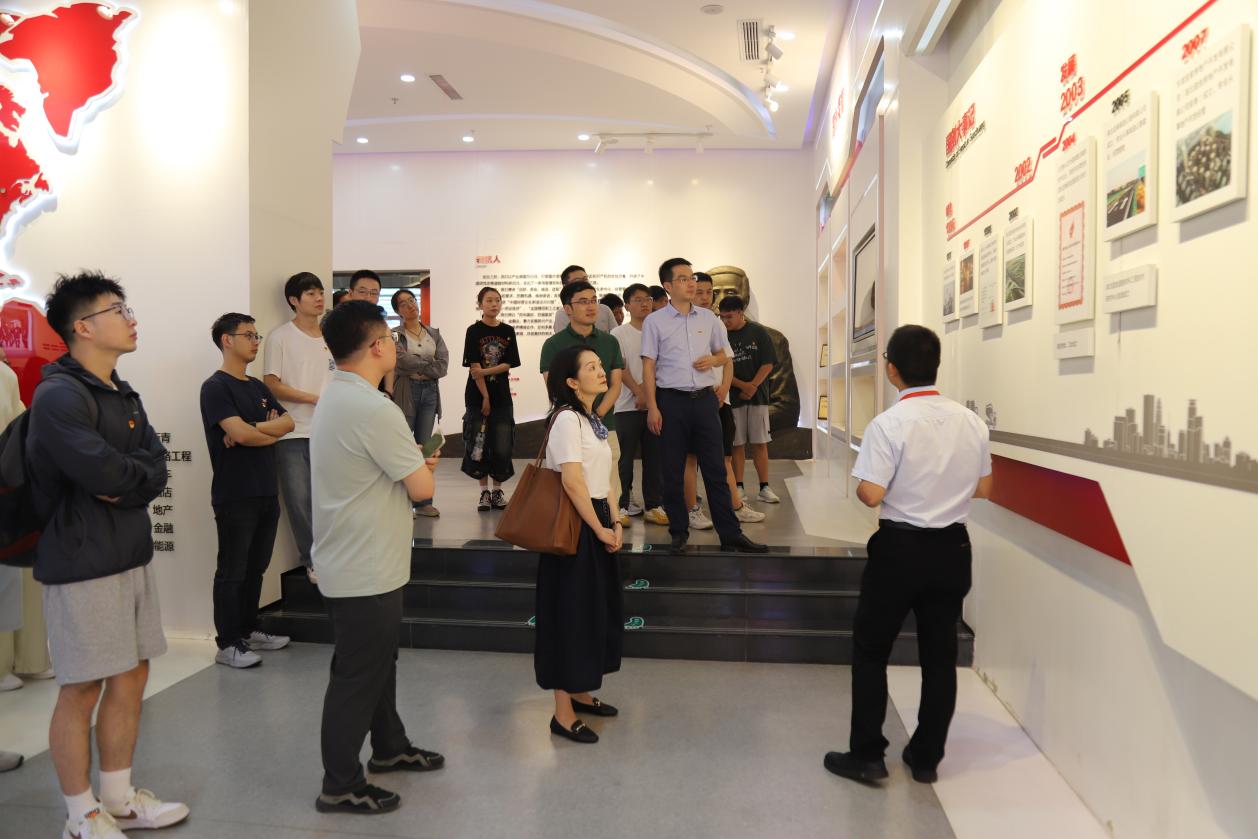 在国创集团机关党支部书记、工会副主席江志伟的带领下,与会领导、师生们集中参观了国创集团展厅、职工文化活动中心,了解公司发展历程、经营理念及其多元化产业布局。通过参观学习,党员们深刻认识到以国创集团为代表的行业企业支持国家高新技术发展,助力实现国家科技自立自强的厚重责任感与积极贡献。