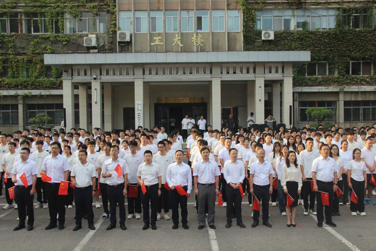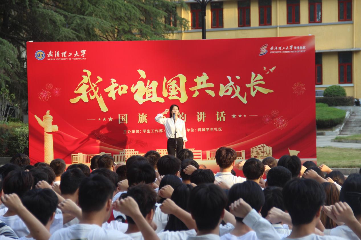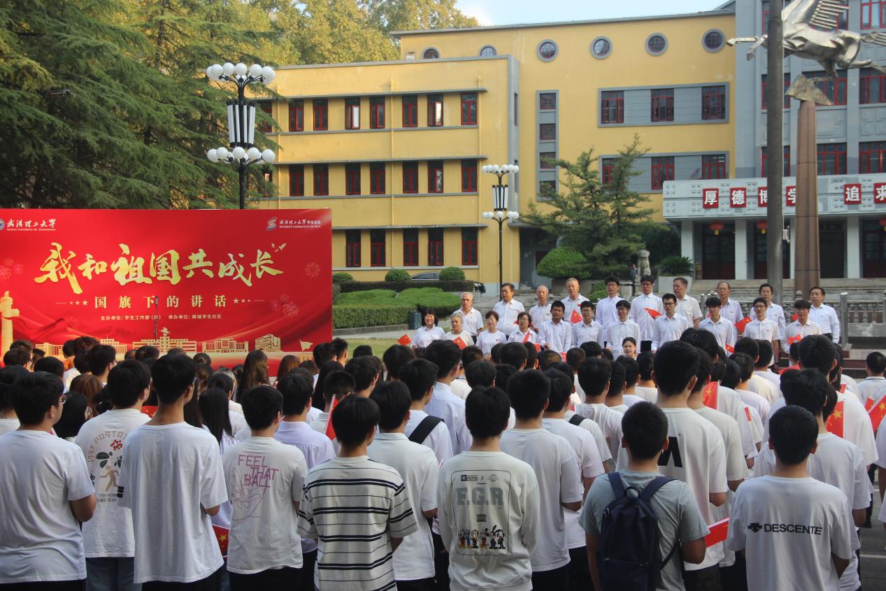To celebrate the 75th anniversary of the founding of the People’s Republic of China, foster students’ patriotism, national pride and sense of responsibility, the Growing Together with the Motherland—Speech under the National Flagpatriotic education event was held on the morning of September 30 at Flying Horse Square on the West Campus. The event was jointly organized by the Publicity Department, the Office of Student Affairs, and the University Retired Cadres Committee. Attendees included representatives from the Graduate Student Affairs Office, the School of Materials Science and Engineering (SMSE), the International School of Materials Science and Engineering, the School of Automation, student affairs coordinators, faculty representatives, counselors, and more than 300 undergraduate and postgraduate students. Shen Guofang, Deputy Party Secretary of the School of Materials Science and Engineering, presided over the ceremony.