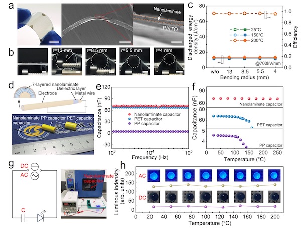 By fabricating flexible ultrathin nanolaminate films on bent metal wires, the team developed a novel metal wire capacitor, exhibiting: