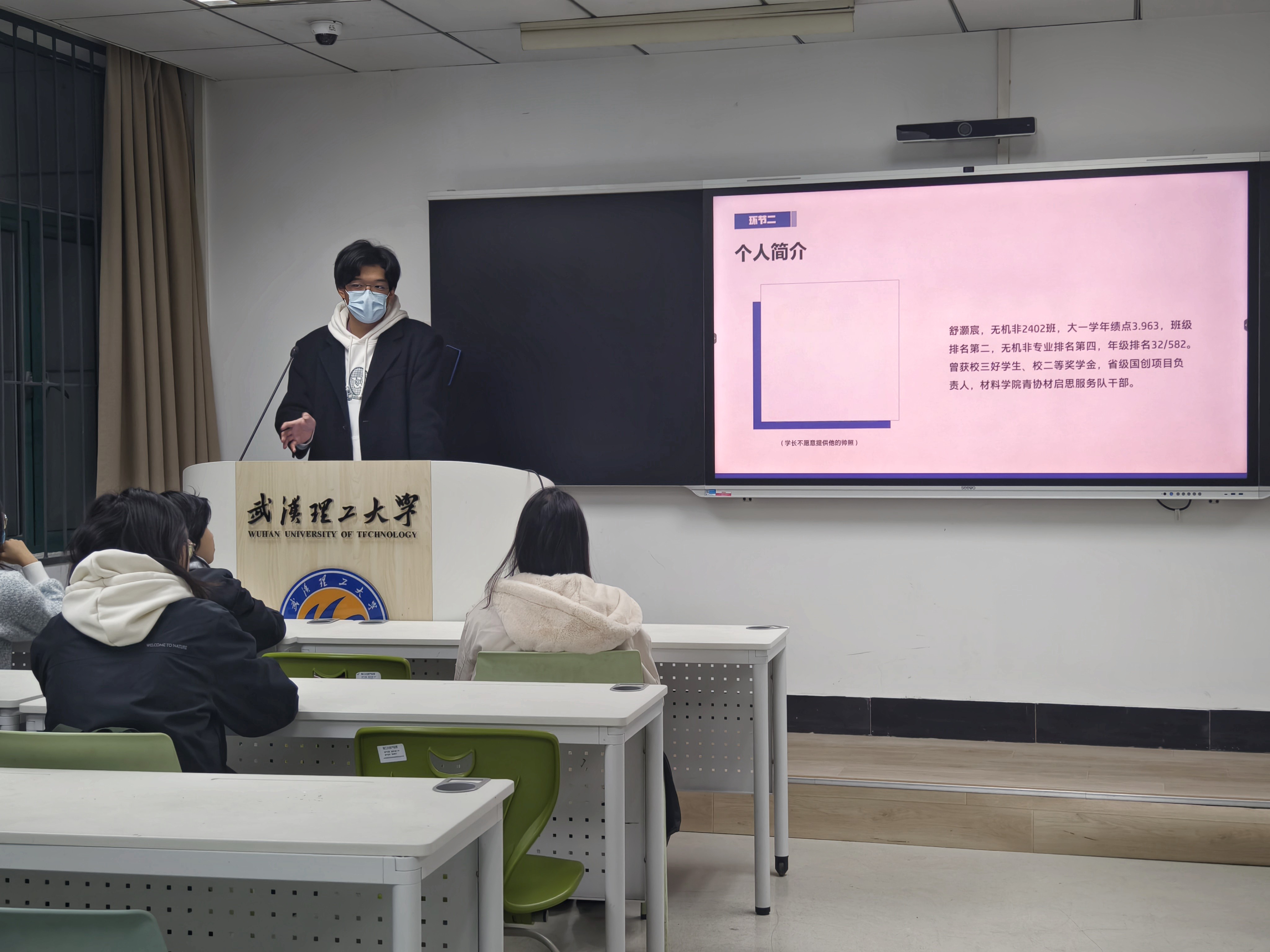 随后的朋辈分享环节,无机非2402班舒灏宸学长应邀分享经验。他以“高效学习与科学备考”为主题,从日常积累与期末备考两个维度系统讲解,为同学们提升学习效率、做好考前规划提供了清晰指引与实用方法。