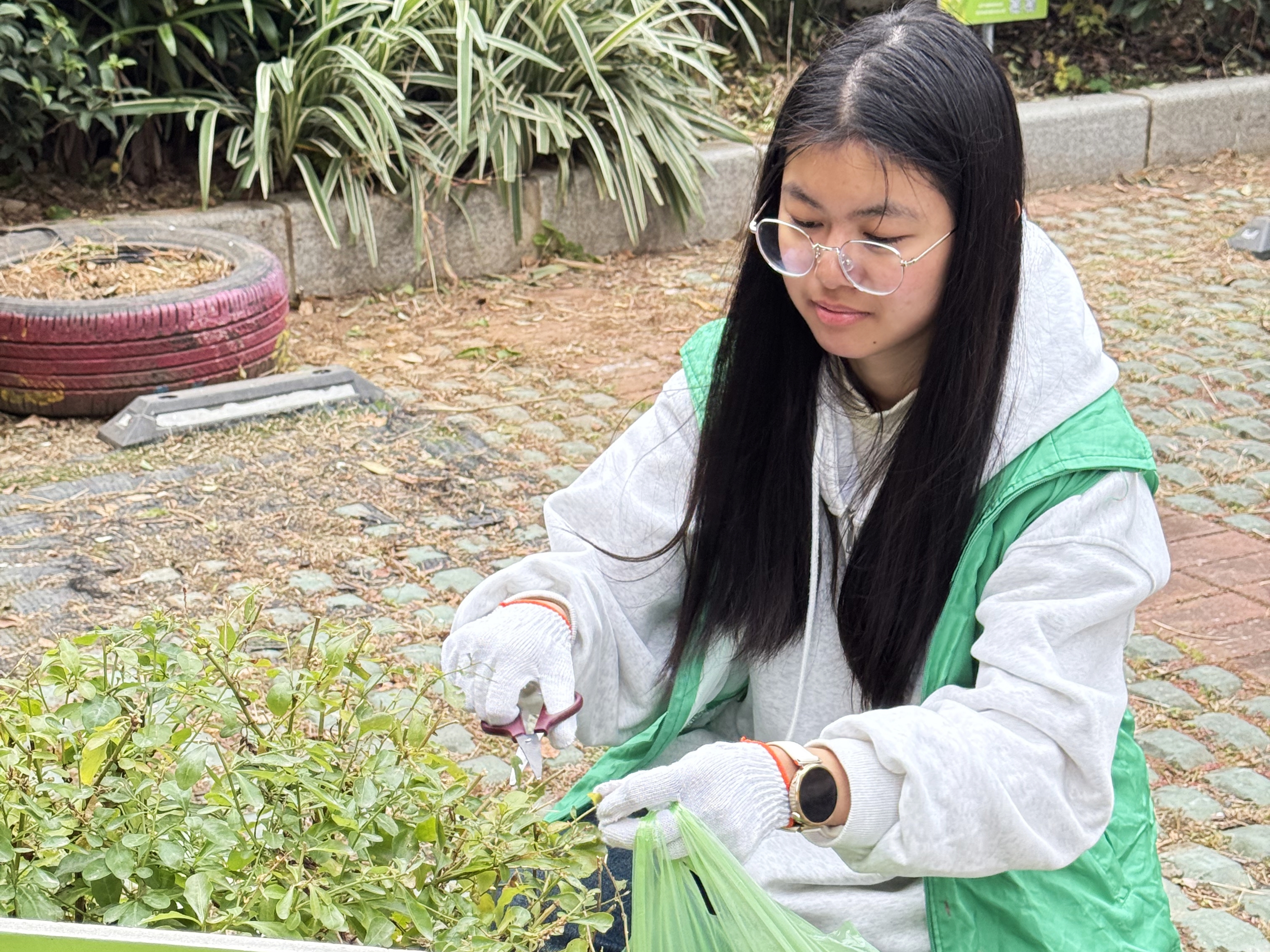 志愿者们分组协作,手持扫帚、垃圾袋,重点清理社区公共步道与花坛区域。面对灌木丛中的碎纸屑、缠绕在花枝间的塑料袋,大家或弯腰徒手捡拾,或用夹子仔细清理。经过两小时的忙碌,原本散落垃圾与枯叶的角落逐渐恢复整洁。