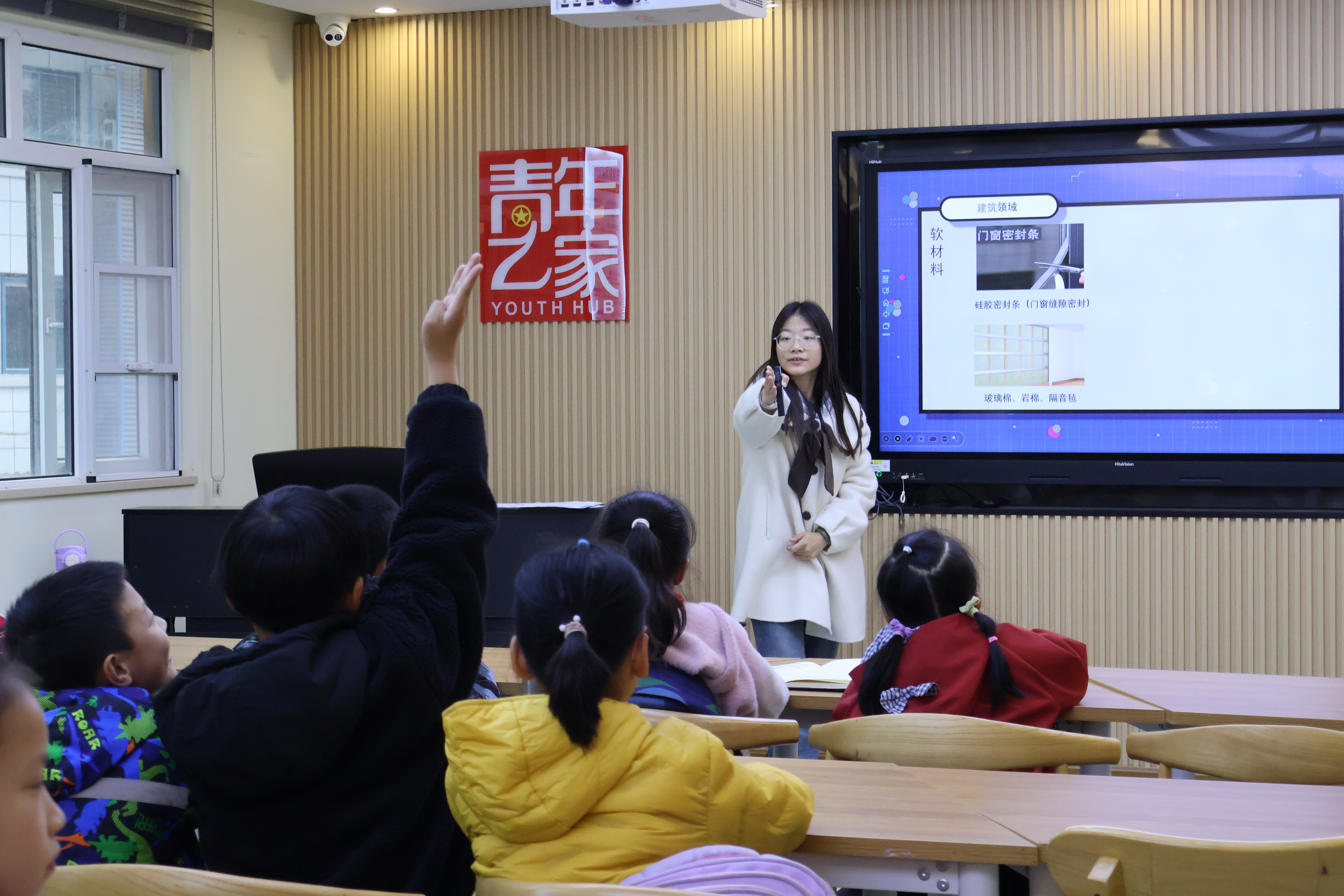与此同时,科普课堂也在社区活动室展开。主讲人王欣妍以“软材料 VS 硬材料”为主题,通过动手实践激发孩子们对科学的兴趣,为他们播下探索的材料科学种子。