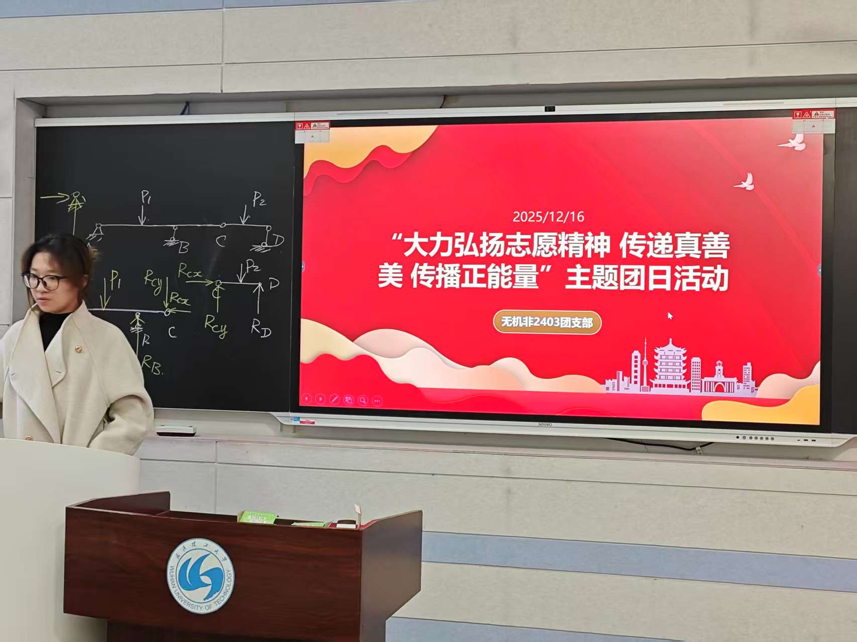 为深入学习贯彻习近平总书记关于志愿服务工作的重要指示精神,进一步引导广大青年团员培育和践行社会主义核心价值观,大力弘扬“奉献、友爱、互助、进步”的志愿精神,无机非2403团支部于12月16日在博学西楼104教室开展了以“大力弘扬志愿精神,传递真善美传播正能量”为主题的团日活动。团支书姚艺佳主持活动,无机非2403团支部全体同学参与。