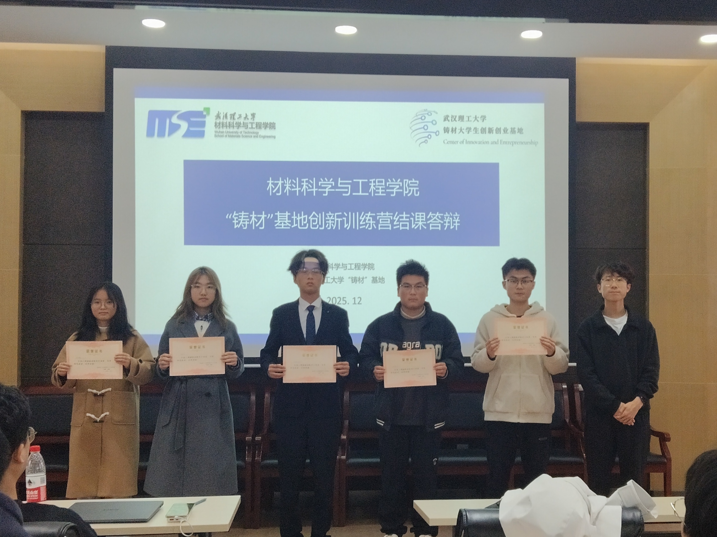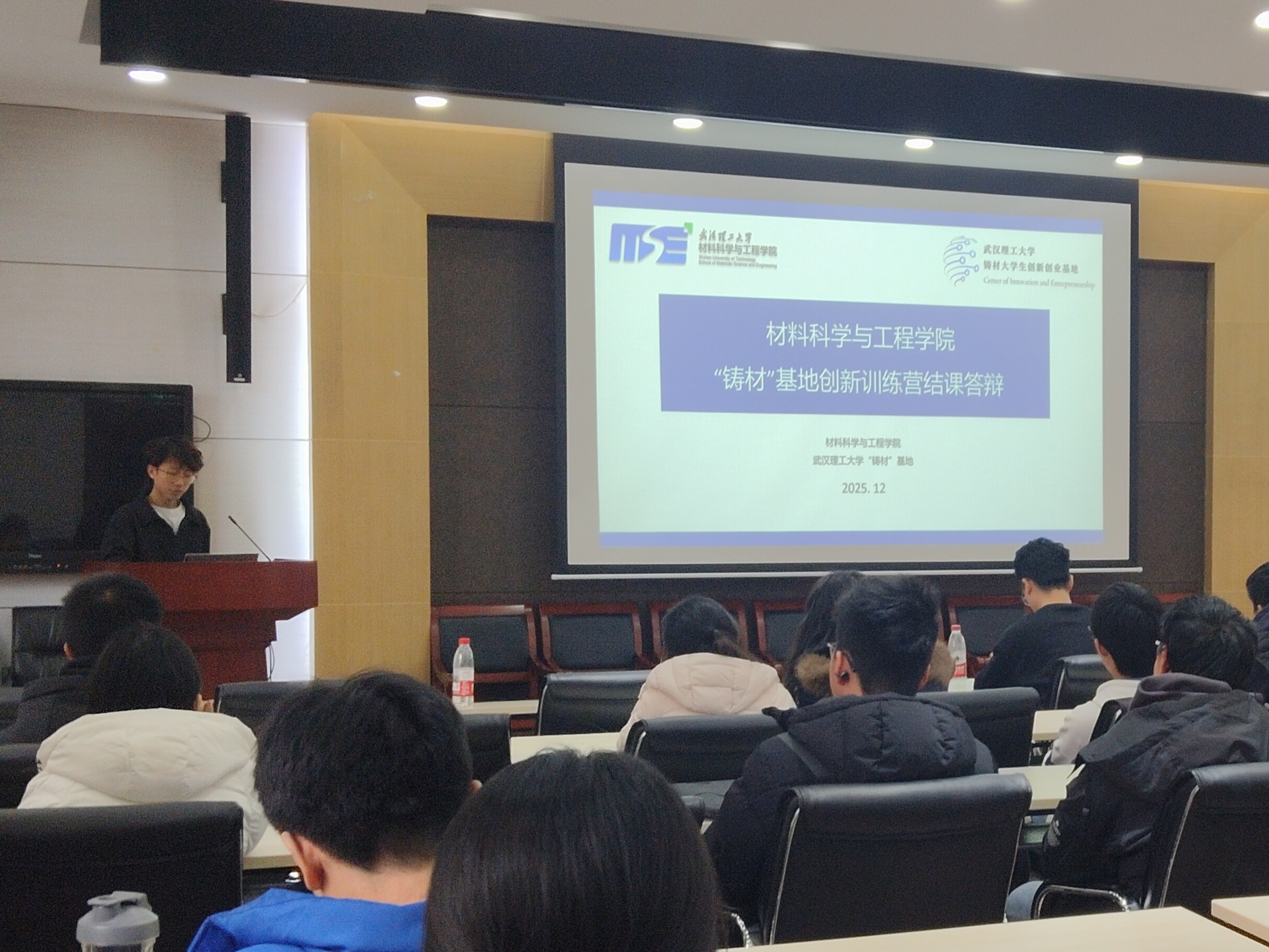 12月20日上午8时,第八期“铸材”大学生创新创业基地创新训练营结营答辩活动在西院材料测试报告厅顺利举行并圆满收官。活动现场秩序井然,各小组学员依次登台,展示了在科研训练阶段取得的成果。