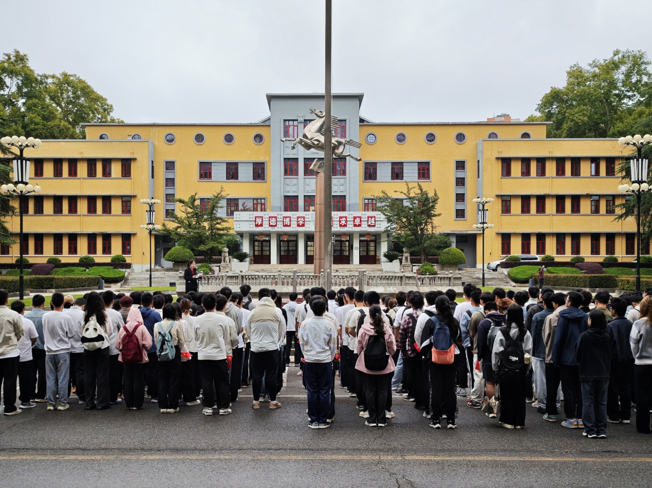 最后,师生们齐唱校歌《卓越之歌》。“长江滨,南湖畔,理工筑梦想……” 熟悉的激昂旋律在广场上空回荡,歌声不仅唱出了对校园的深厚情谊,更将“厚德博学、追求卓越”的理工精神融入血脉,激励着学子们在新征程上奋勇前行。
