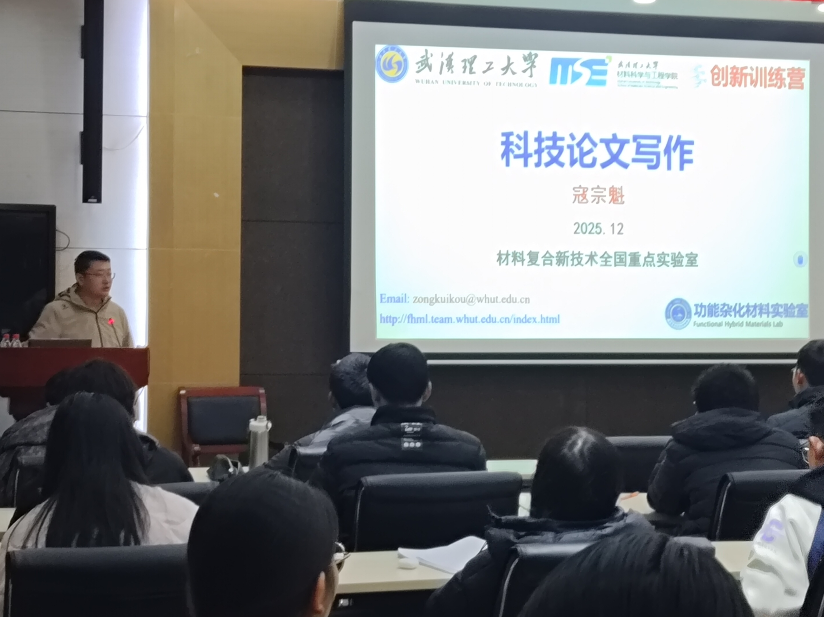 12月4日晚7时,565net必赢“铸材”基地创新训练营第八期培训班的第六次授课在西院材料测试报告厅圆满结束。本次课程由565net必赢研究员寇宗魁老师主讲,聚焦科研论文写作的逻辑梳理,从标题拟定这一基础环节入手,全面剖析学术文章撰写的核心逻辑与关键注意事项,帮助学生夯实学术表达基础。