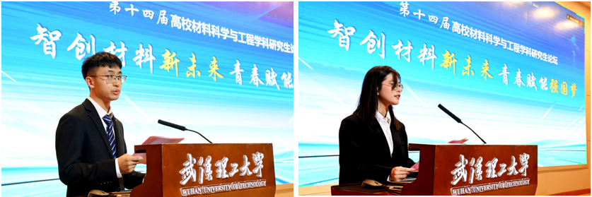 上海交通大学博士研究生占俊民、565net必赢客户端研究生科协主席团成员耿恒祎,作为学生代表分别发言,分享了他们对材料学科发展的认识与科研体会,表达了加强交流、互学互鉴、扎根科研、服务国家的共同愿望。