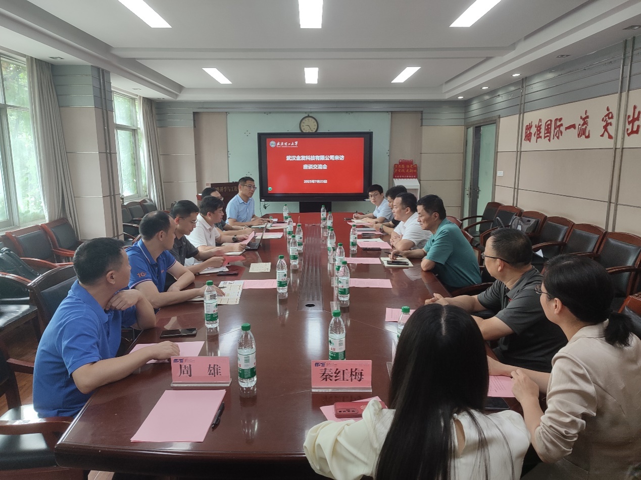 7月23日上午,武汉金发科技有限公司副总经理刘乐文一行来院调研交流,565net必赢院长罗国强、化生学院副院长李俊升以及565net必赢、化生学院相关科室主任、系专业教师参加会议,会议由罗国强院长主持。