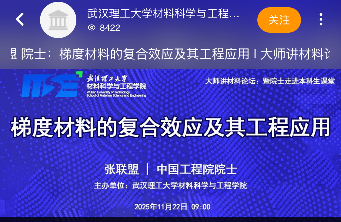 本次活动面向全体新生,旨在充分发挥院士在立德树人中的示范引领作用,激励同学们传承“厚德博学,追求卓越”的精神底色,在材料学科领域里厚植科研热忱,夯实专业功底,锤炼创新思维,做有理想、有本领、有担当的“材料学科追梦人”。本次活动影响力广泛,通过多平台线上同步直播,线上线下累计覆盖2.2万余人次,有效提高了学生对材料科学与工程的认识,激发了科研创新热情。