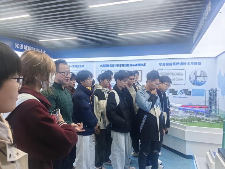首站来到绿色建材展区,同学们重点参观了水泥绿色制备关键技术与装备、水泥窑富氧燃烧技术与装备,以及工业CO₂高效建材化利用关键技术与产业化等多项代表性成果。大家切身感受到材料学科在我国区域经济社会发展中的重要价值,也更清晰地认识到学校在推动“双碳”战略落地、助力国家建材行业转型升级中发挥的关键支撑作用。