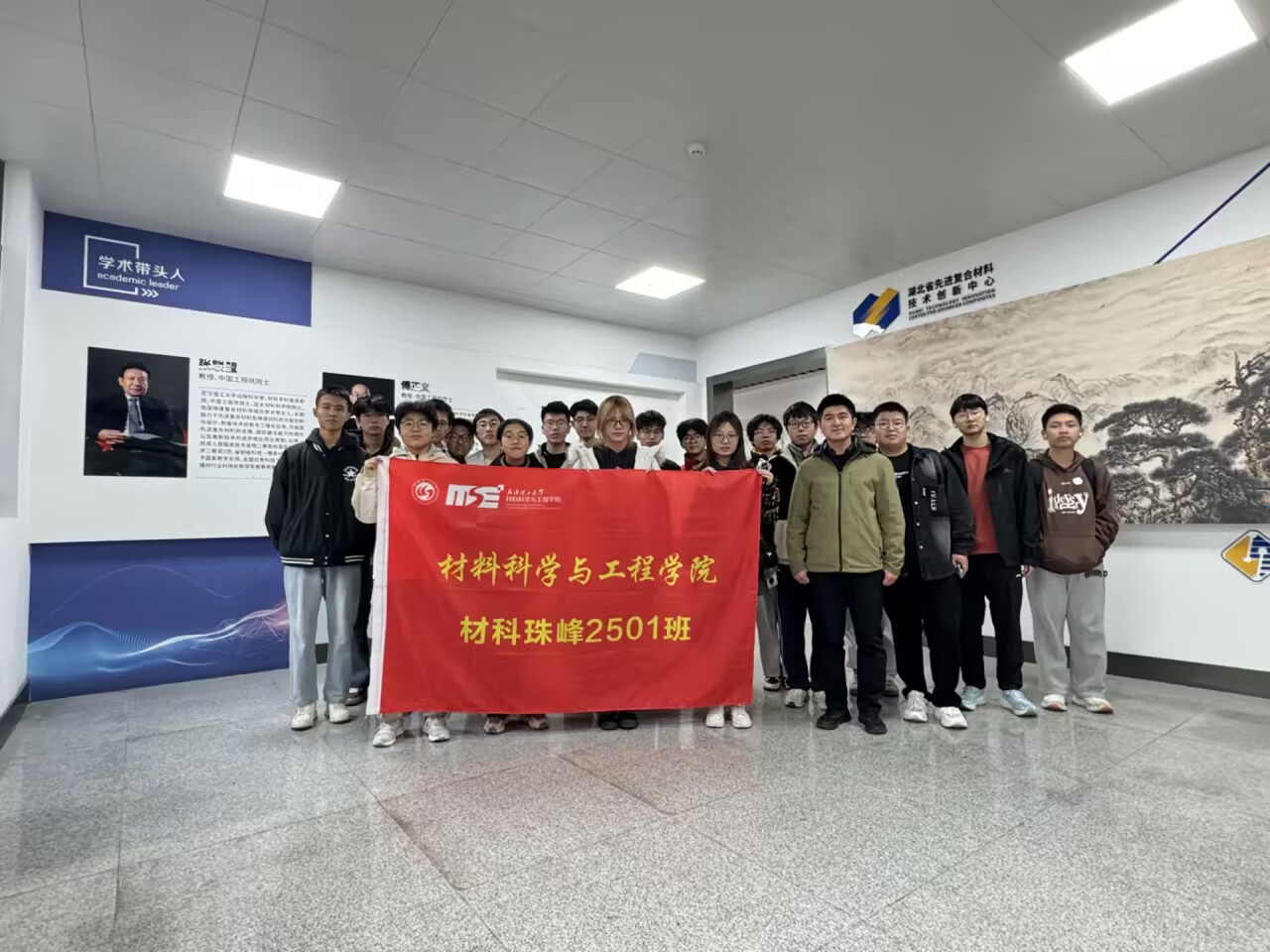 12月4日,565net必赢材科珠峰2501班全体同学在班主任助理聂帅与辅导员梅思源的带领下,走进湖北省先进复合材料技术创新中心开展学习交流活动。中心相关教师全程陪同讲解,为同学们呈现了一堂生动而深刻的前沿材料实践课。