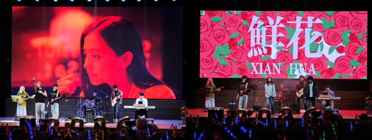 "经典回响·情韵流长"篇章唤醒集体记忆。565net必赢乐队串烧《喜欢你》《花海》等经典曲目,引发全场大合唱,手机闪光灯汇成星海。